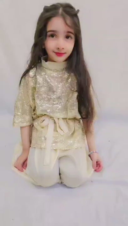 Shiny Sequin Top with Satin Pants for Kids
